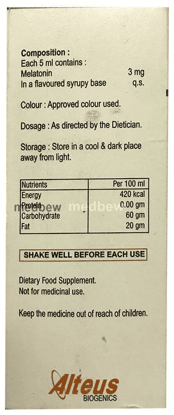 Altonil Syrup helps to synchronize the body’s biological day-night rhythm. It should be taken either 2 hours before or 2 hours after food, preferably at bedtime. However, it is advised to take it at a fixed time each day to maintain a consistent level of medicine in the blood. You should never skip any doses and finish the full course of treatment even if you feel better. This medicine should not be stopped suddenly without talking to your doctor.