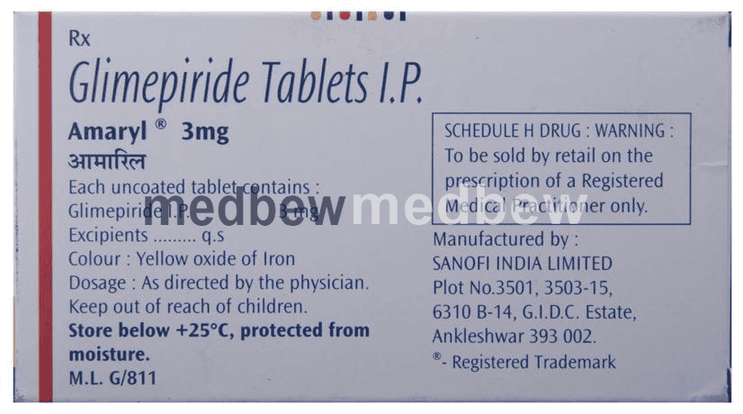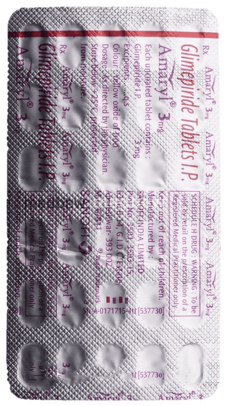 Amaryl 3mg Tablet belongs to a group of medicines called sulfonylureas and is used to treat type 2 diabetes mellitus in adults. It helps control blood sugar levels in people with diabetes thereby preventing serious complications of diabetes such as kidney damage and blindness.