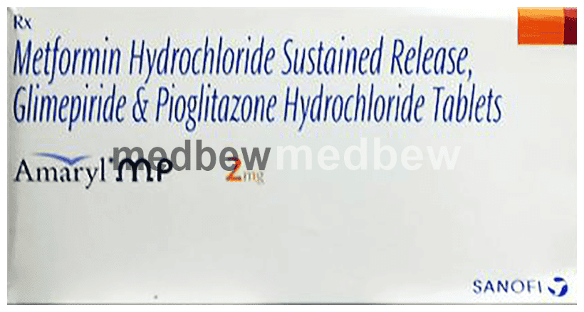 Amaryl MP 2mg Tablet SR is a combination medicine that helps control blood sugar levels. This medicine is used together with diet and exercise to improve blood sugar control in adults with type 2 diabetes mellitus. It helps in proper utilisation of insulin, thereby lowering the blood sugar levels.