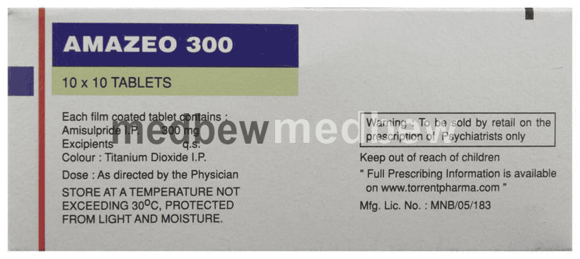 Amazeo 300 Tablet is a prescription medicine used in the treatment of schizophrenia, a mental disorder that can result in hallucinations or delusions and also adversely affects a person’s ability to think and behave.