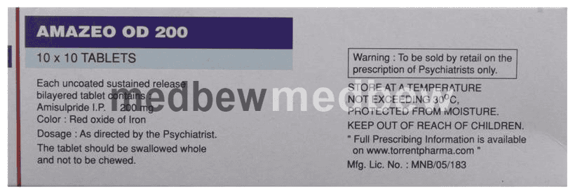 Amazeo OD 200 Tablet SR is a prescription medicine used in the treatment of schizophrenia, a mental disorder that can result in hallucinations or delusions and also adversely affects a person’s ability to think and behave.