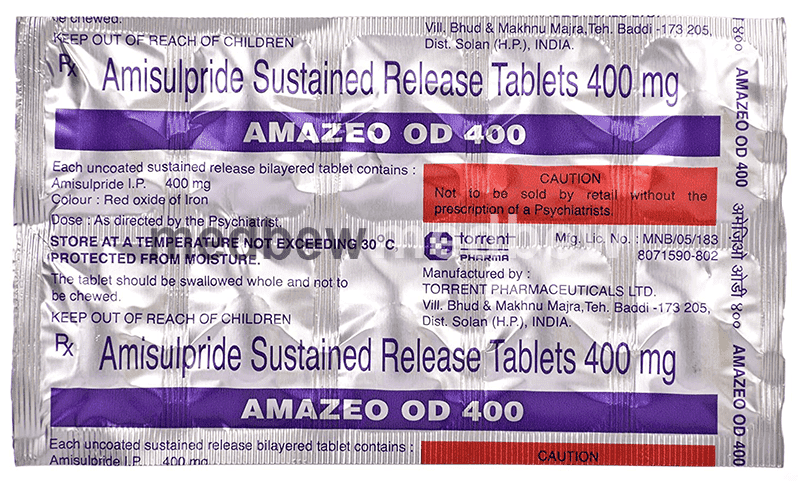 Amazeo OD 400 Tablet is a prescription medicine used in the treatment of schizophrenia, a mental disorder that can result in hallucinations or delusions and also adversely affects a person’s ability to think and behave.