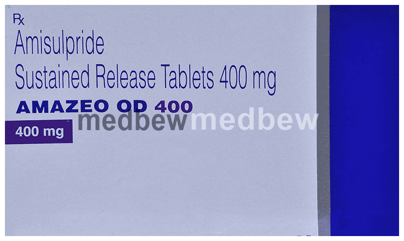 Amazeo OD 400 Tablet belongs to antipsychotic class of medicines. It acts against dopamine receptors in the brain. Dopamine is a neurotransmitter which helps in regulating mood and behavior. Schizophrenia is associated with an overactivity of dopamine in the brain, and this overactivity may cause delusions and hallucinations. Amazeo OD 400 Tablet prevents this excessive activity of dopamine in the brain which helps in treating symptoms of schizophrenia.