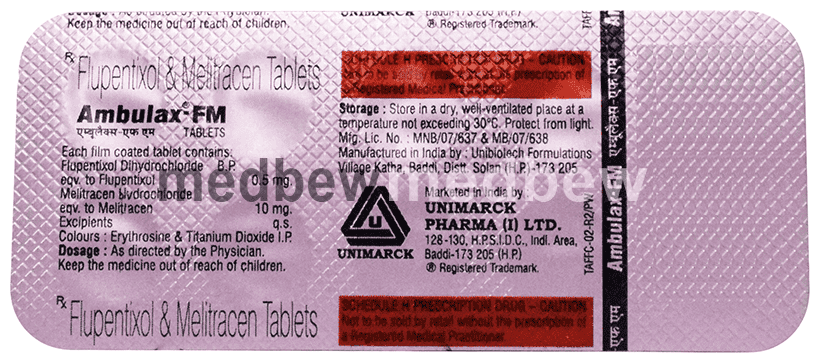 Ambulax-FM Tablet is a combination of two medicines used in the treatment of depression. It helps by increasing the level of chemical messengers in the brain that relaxes the brain and nerves, thus treating your depression.
