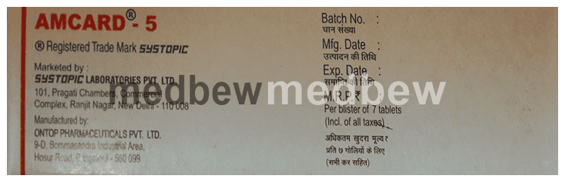 You should keep on taking Amcard 5 Tablet for as long as your doctor has recommended you to take it. You may need to take it lifelong. Do not stop taking it, even if you feel well or your blood pressure is well controlled. If you stop taking Amcard 5 Tablet, your blood pressure may increase again and your condition may worsen.