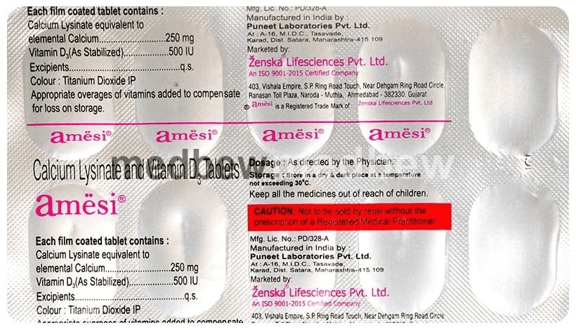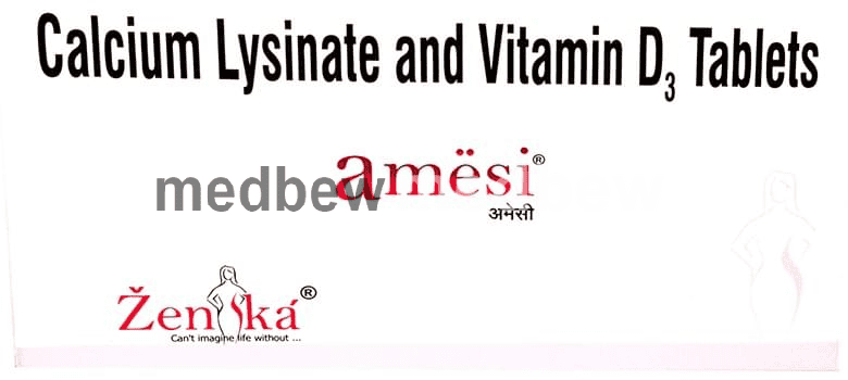 Amesi Tablet is a combination of two nutritional supplements: Calcium and Vitamin D3. Calcium is added as a dietary supplement when the amount of calcium taken in the diet is not enough. Vitamin D3 is a form of vitamin D. It raises vitamin D levels in your blood. This in turn raises calcium levels in your blood by helping you absorb more calcium from food.