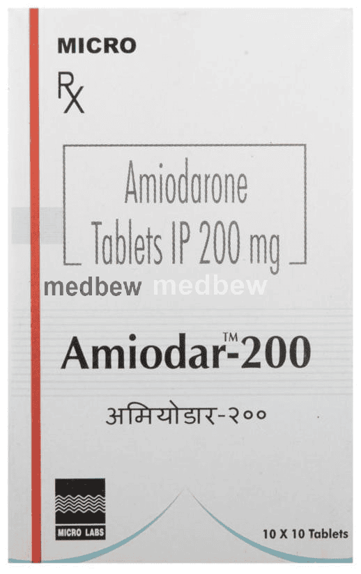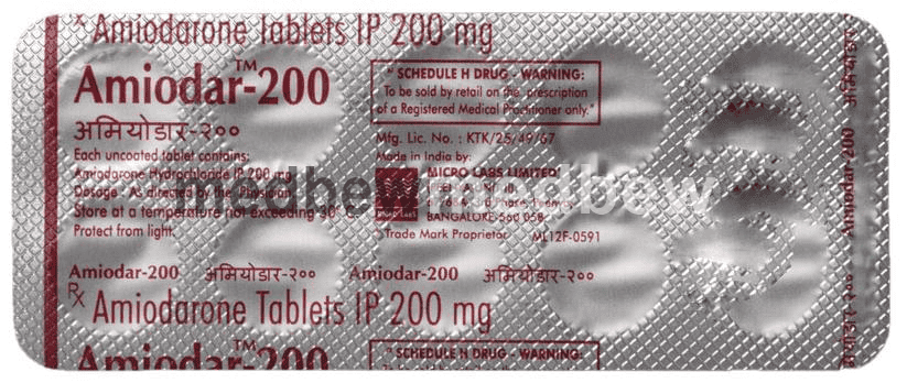 Amiodar 200 Tablet is used to treat various types of serious irregular heartbeat (arrhythmia) such as fibrillation and tachycardia. It is an anti-arrhythmic type of medicine and rapidly restores your heart to a steady and regular rhythm.