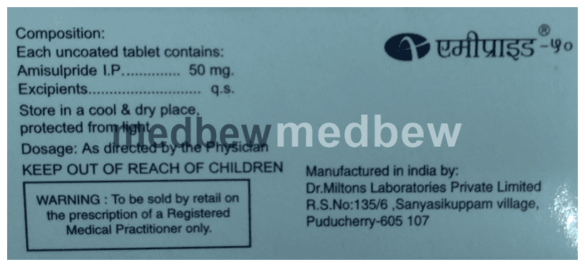 Amipride 50 Tablet is a prescription medicine used in the treatment of schizophrenia, a mental disorder that can result in hallucinations or delusions and also adversely affects a person’s ability to think and behave.