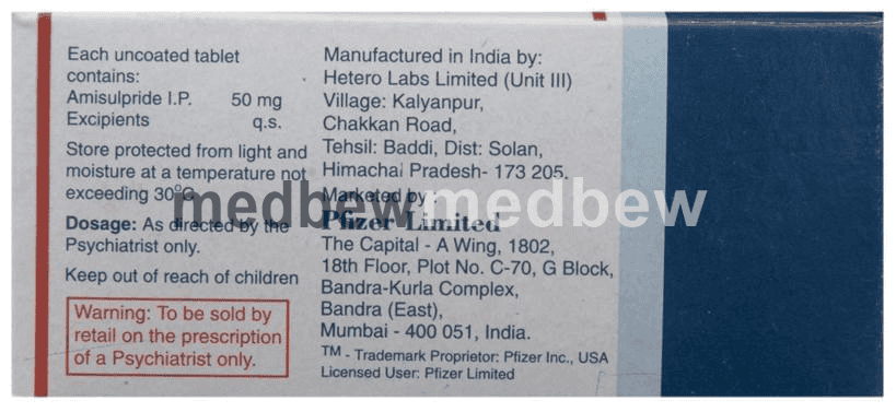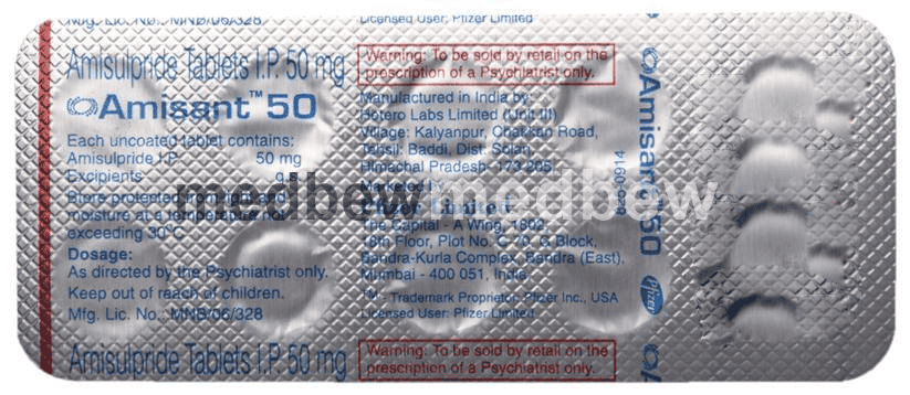 Amisant 50 Tablet is a prescription medicine used in the treatment of schizophrenia, a mental disorder that can result in hallucinations or delusions and also adversely affects a person’s ability to think and behave.