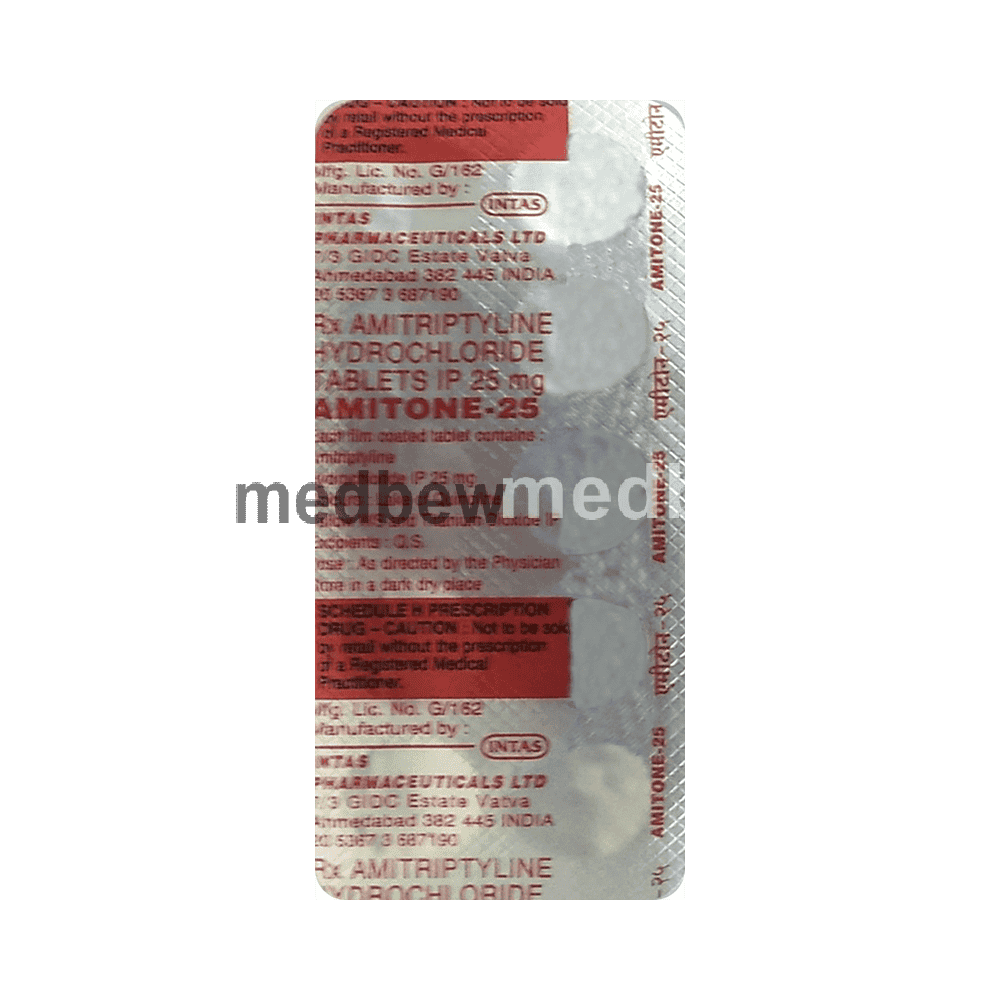 Take this medicine in the dose and duration as advised by your doctor. Swallow it as a whole. Do not chew, crush or break it. Amitone 25mg Tablet may be taken with or without food, but it is better to take it at a fixed time.