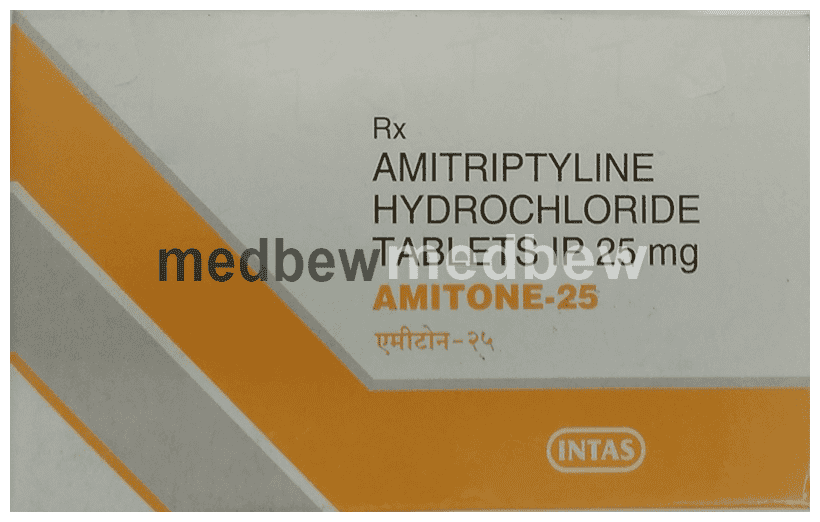 Amitone 25mg Tablet is a tricyclic antidepressant. Different doses of this medicine help in treating and preventing different problems such as depression, neuropathic pain, and migraine.