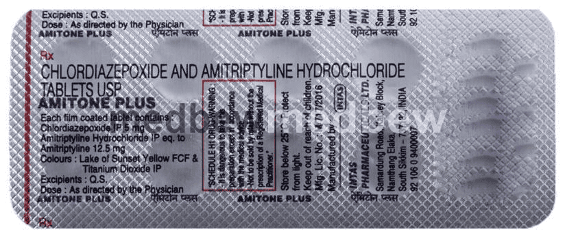 Amitone Plus Tablet is a combination of two medicines. It is used in the treatment of depression associated with anxiety. It helps in regulating mood and to reduce anxiety.