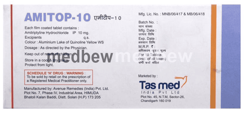Amitop 10 Tablet is a tricyclic antidepressant. Different doses of this medicine help in treating and preventing different problems such as depression, neuropathic pain, and migraine.