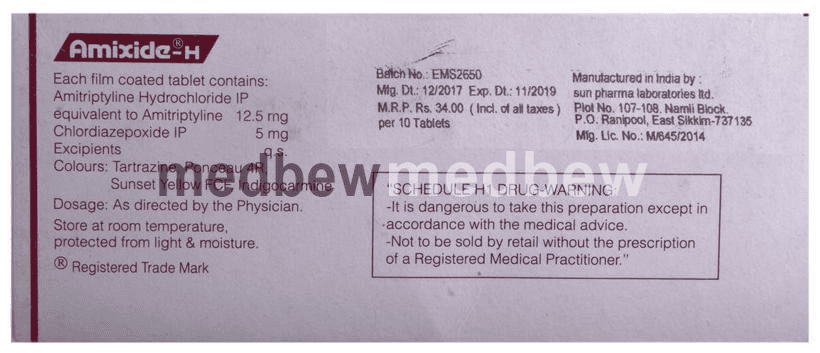 Amixide-H Tablet is a combination of two medicines. It is used in the treatment of depression associated with anxiety. It helps in regulating mood and to reduce anxiety.