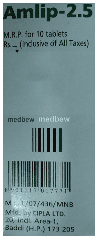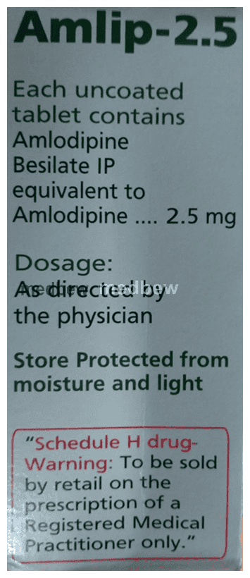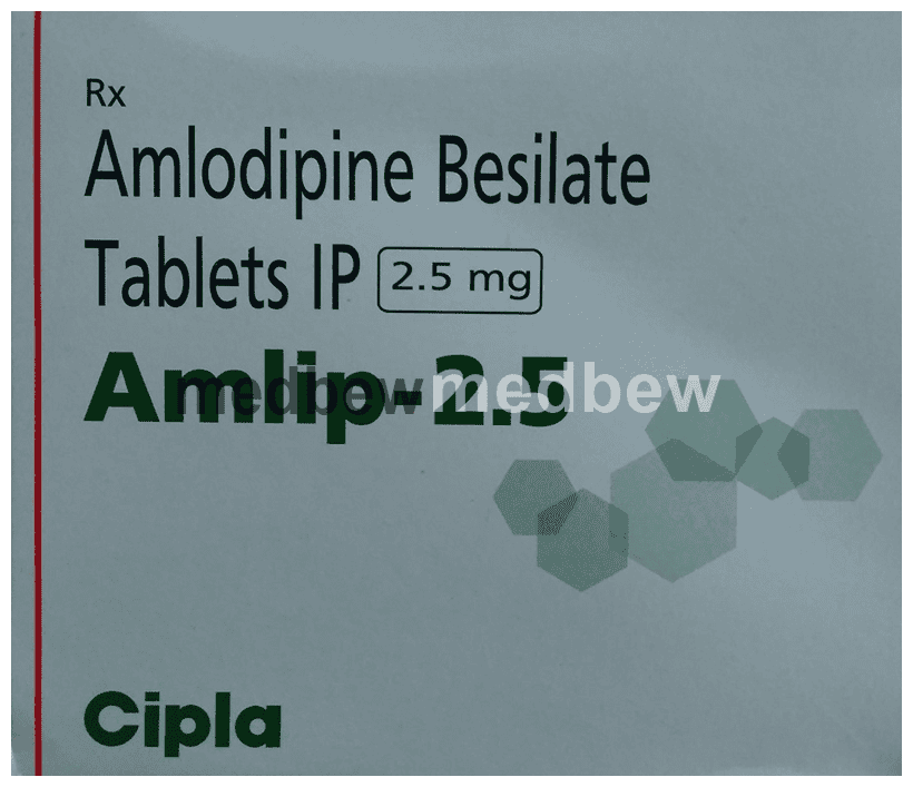 Amlip 2.5 Tablet belongs to a class of medicines known as calcium channel blockers. It is used to treat high blood pressure (hypertension) and prevent angina (heart-related chest pain). It lowers blood pressure and reduces the heart’s workload, which helps prevent heart attacks and strokes.