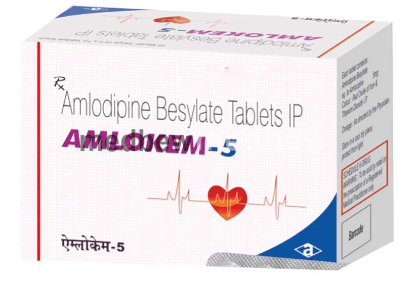 Amlokem 5mg Tablet belongs to a class of medicines known as calcium channel blockers. It is used to treat high blood pressure (hypertension) and prevent angina (heart-related chest pain). It lowers blood pressure and reduces the heart’s workload, which helps prevent heart attacks and strokes.