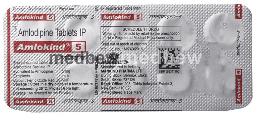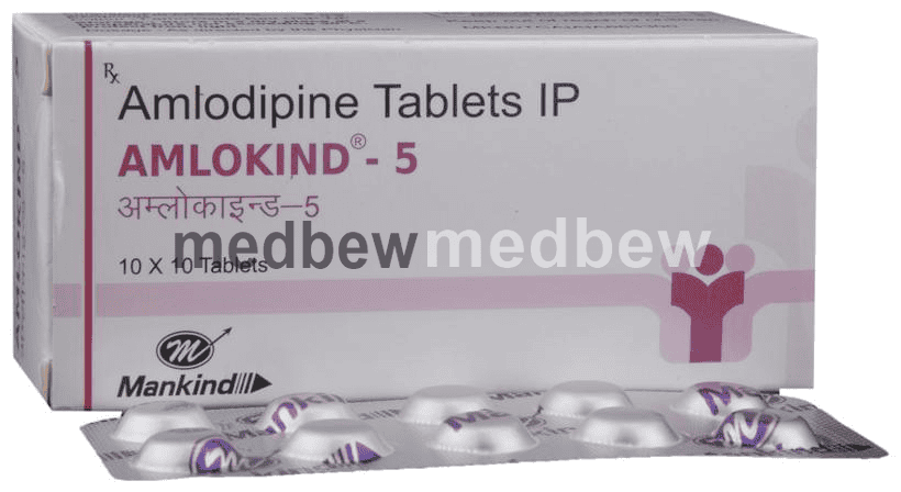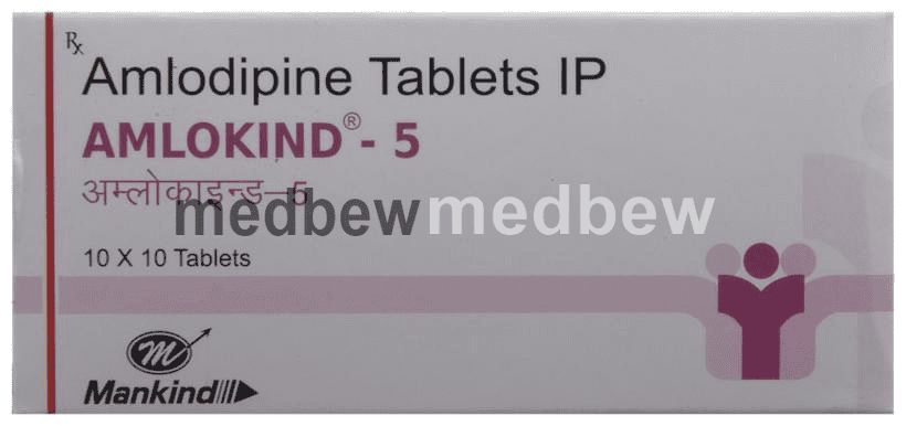 Amlokind 5 Tablet belongs to a class of medicines known as calcium channel blockers. It is used to treat high blood pressure (hypertension) and prevent angina (heart-related chest pain). It lowers blood pressure and reduces the heart’s workload, which helps prevent heart attacks and strokes.
