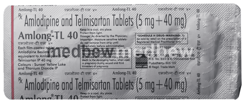 Amlong-TL 40 Tablet contains two medicines, both of which help to control high blood pressure. It lowers the blood pressure by relaxing the blood vessels and making it easier for your heart to pump blood around your body. This will reduce your risk of having a heart attack or a stroke.