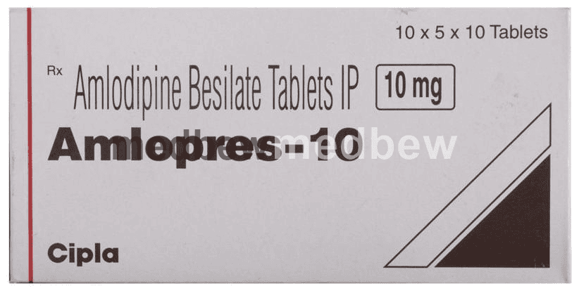 Amlopres 10 Tablet belongs to a class of medicines known as calcium channel blockers. It is used to treat high blood pressure (hypertension) and prevent angina (heart-related chest pain). It lowers blood pressure and reduces the heart’s workload, which helps prevent heart attacks and strokes.