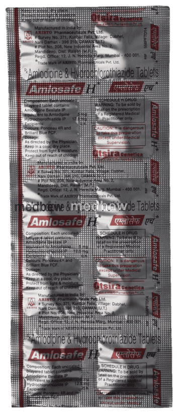 Amlosafe H Tablet is a combination medicine used in the treatment of hypertension (high blood pressure). It also helps to reduce the risk of stroke and heart attack.
