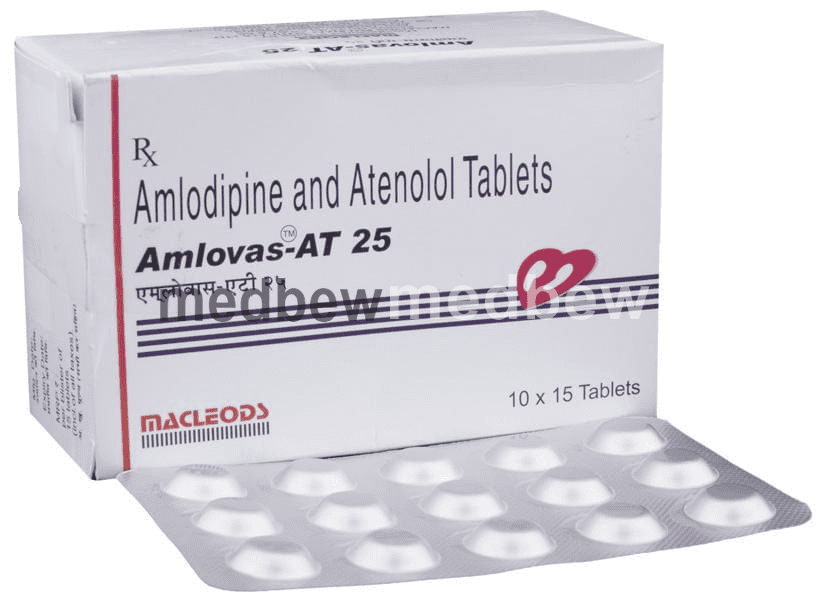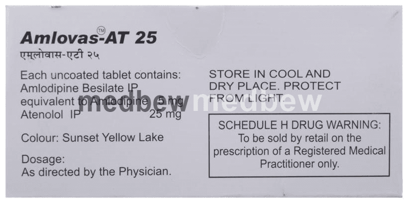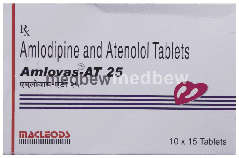 Amlovas-AT 25 Tablet is used to treat hypertension (high blood pressure). This is a combination of two medicines that controls blood pressure when a single medication is not effective. It helps to lower high blood pressure and thus reduces the chances of future heart attack and stroke.