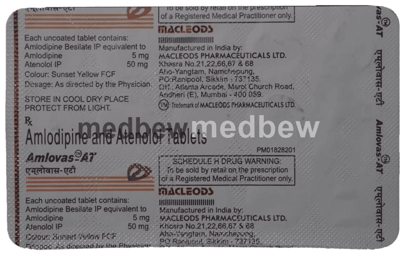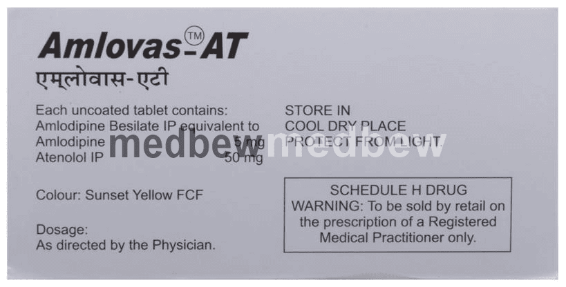 Amlovas-AT Tablet is used to treat hypertension (high blood pressure). This is a combination of two medicines that controls blood pressure when a single medication is not effective. It helps to lower high blood pressure and thus reduces the chances of future heart attack and stroke.