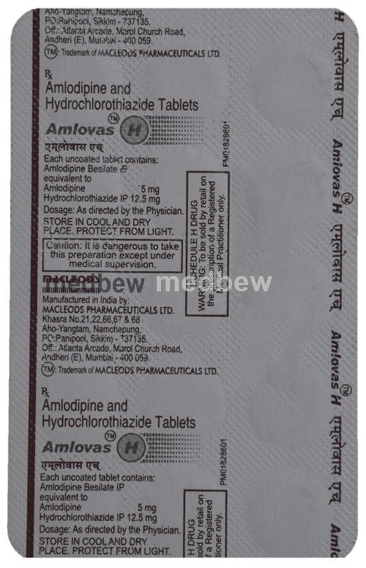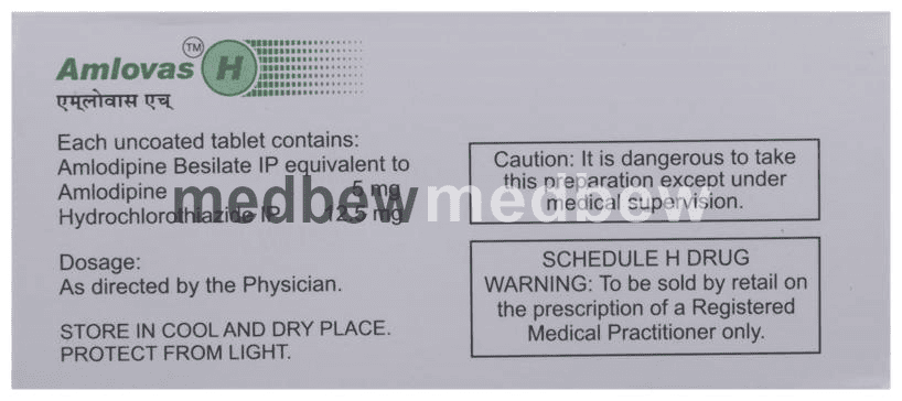Amlovas H Tablet is a combination medicine used in the treatment of hypertension (high blood pressure). It also helps to reduce the risk of stroke and heart attack.