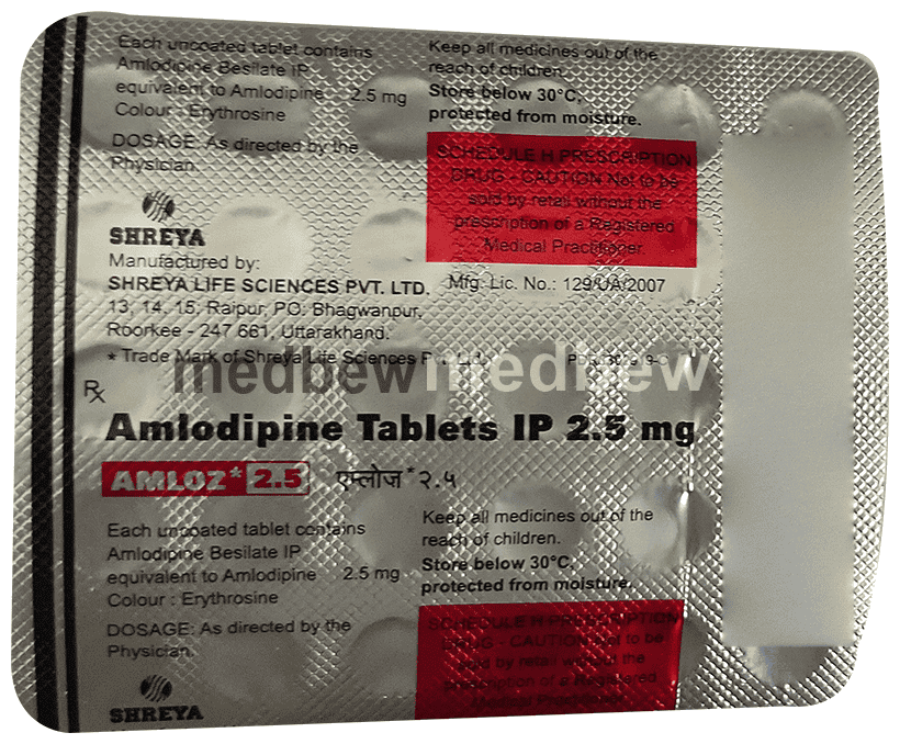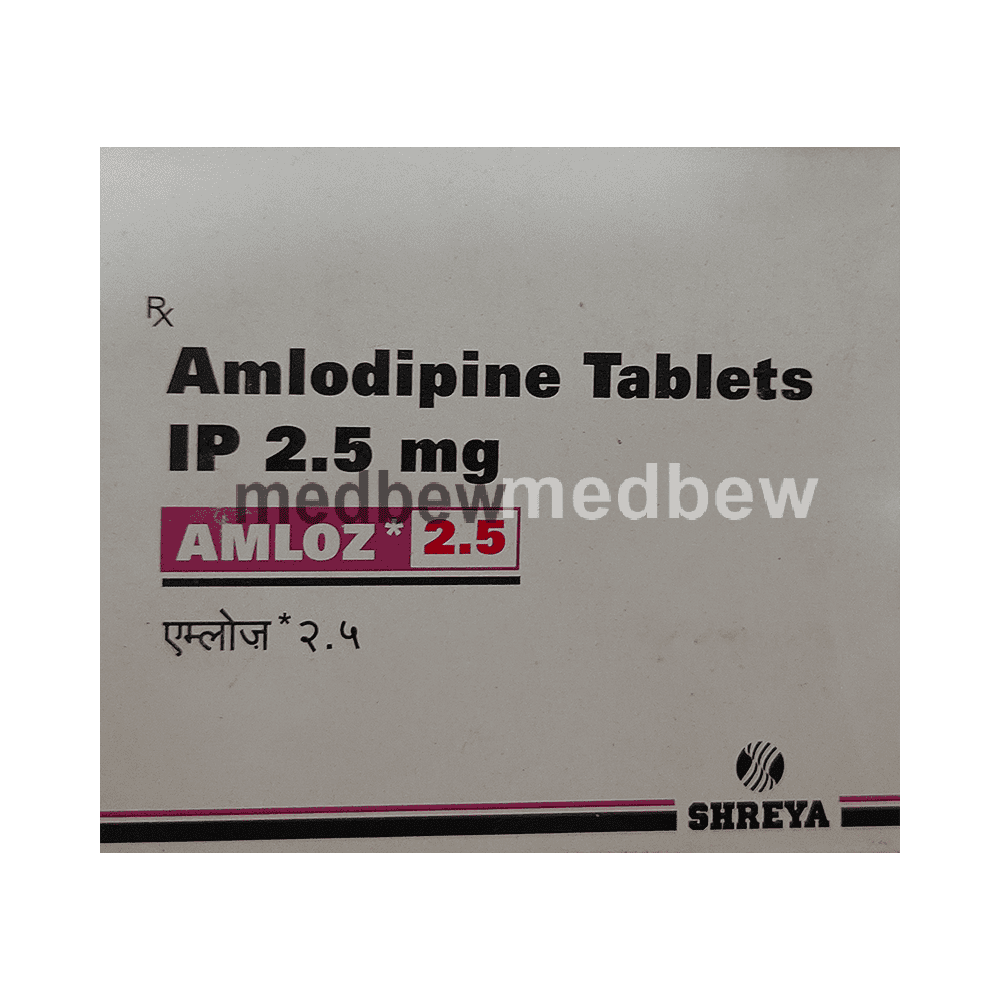 Amloz 2.5 Tablet belongs to a class of medicines known as calcium channel blockers. It is used to treat high blood pressure (hypertension) and prevent angina (heart-related chest pain). It lowers blood pressure and reduces the heart’s workload, which helps prevent heart attacks and strokes.