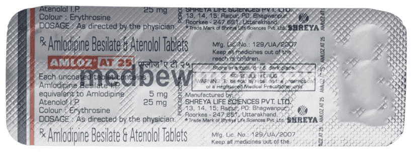 Amloz AT 25 Tablet is used to treat hypertension (high blood pressure). This is a combination of two medicines that controls blood pressure when a single medication is not effective. It helps to lower high blood pressure and thus reduces the chances of future heart attack and stroke.