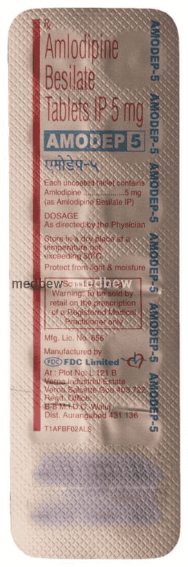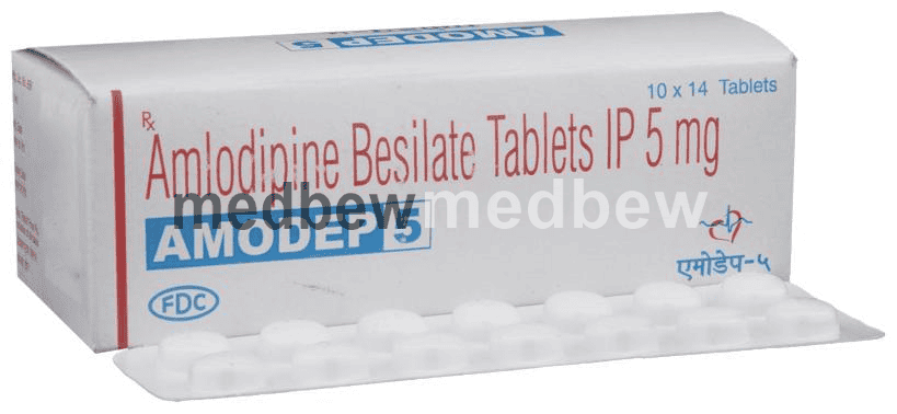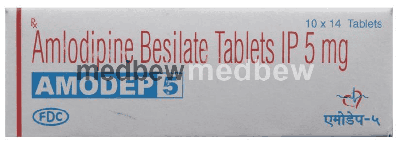 Amodep 5 Tablet belongs to a class of medicines known as calcium channel blockers. It is used to treat high blood pressure (hypertension) and prevent angina (heart-related chest pain). It lowers blood pressure and reduces the heart’s workload, which helps prevent heart attacks and strokes.