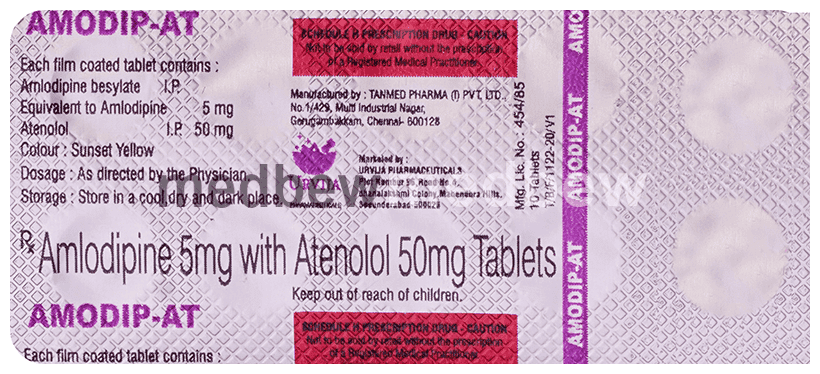 Amodip-AT Tablet is used to treat hypertension (high blood pressure). This is a combination of two medicines that controls blood pressure when a single medication is not effective. It helps to lower high blood pressure and thus reduces the chances of future heart attack and stroke.