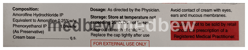 Amorfine Cream is an antifungal medication. It is used for treating fungal infections of the nails. It kills the fungi and helps in treating the infection.
