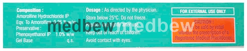 Amrolmac Gel is an antifungal medication. It is used for treating fungal infections of the nails. It kills the fungi and helps in treating the infection.