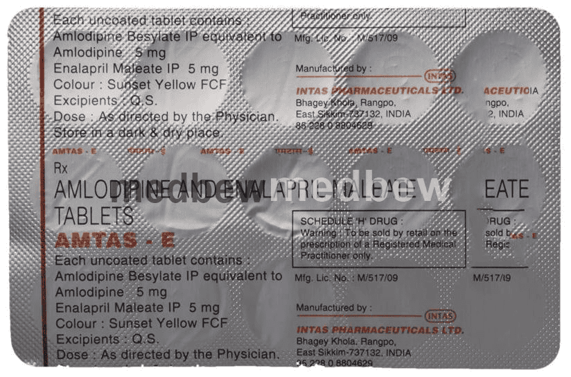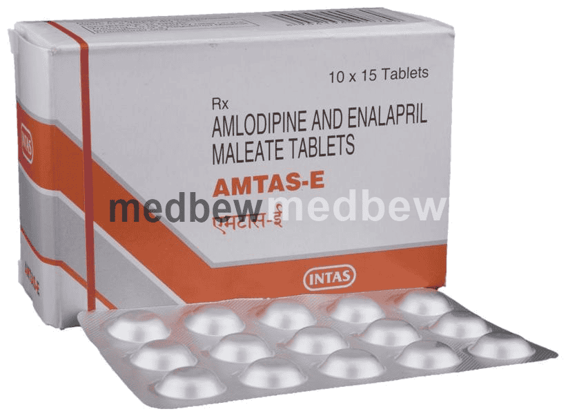 Amtas-E Tablet is used to treat hypertension (high blood pressure). This is a combination of two medicines that controls blood pressure when a single medication is not effective. It helps to lower high blood pressure and thus reduces the chances of future heart attack and stroke.