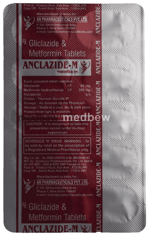 Anclazide-M Tablet belongs to a category of medicines known as anti-diabetic drugs. It is a combination of two medicines used to treat type 2 diabetes mellitus in adults. It helps control blood sugar levels in people with diabetes.