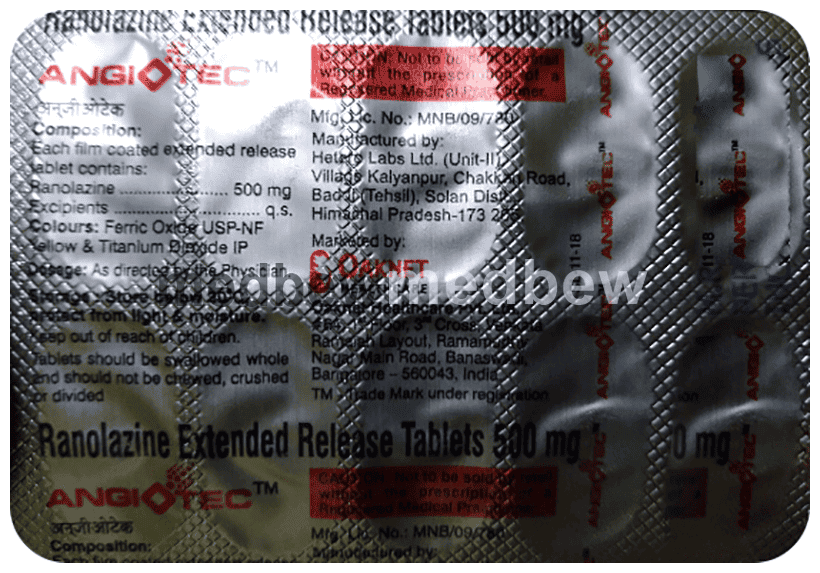 Angiotec Tablet ER is used for the management of angina (heart-related chest pain). It helps to prevent new attacks of angina but does not stop an acute attack, once started. It relieves chest pain by making the heart work more efficiently.