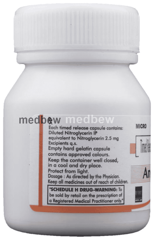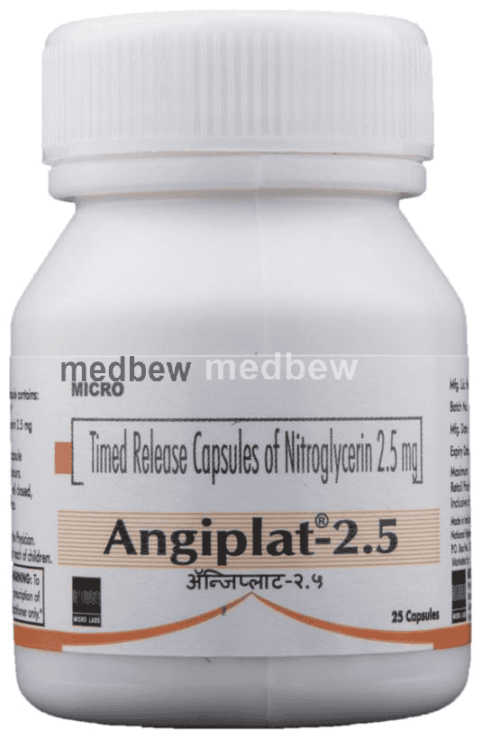 Angiplat 2.5 Capsule TR is used to treat and prevent heart-related chest pain (angina). Angina occurs when the heart muscle is not getting enough blood. This medicine works by relaxing and widening blood vessels so blood can flow more easily to the heart.