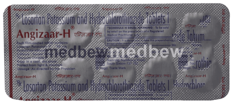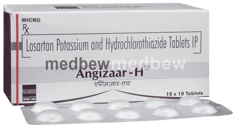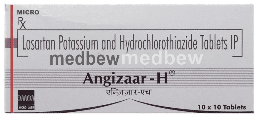 Angizaar-H Tablet is a combination of two medicines. It helps to control high blood pressure in different ways. If high blood pressure is not treated it can lead to heart attacks, strokes and kidney failure.
