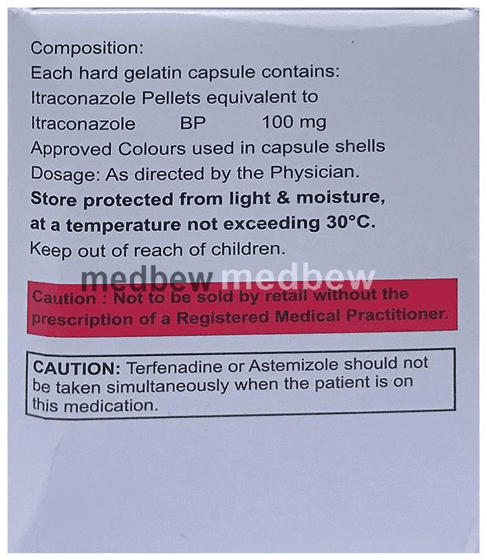 Apexitra 100 Capsule belongs to a group of medicines called antifungals. It works by stopping the growth of fungi and is used to treat infections of the mouth, throat, vagina, and other parts of the body including fingernails and toenails. It kills fungi by destroying the fungal cell membrane.