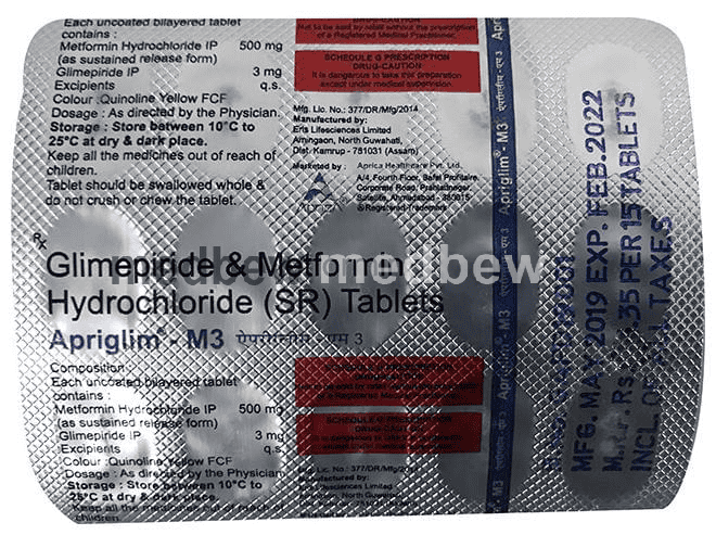Apriglim-M 3 Tablet SR belongs to a category of medicines known as anti-diabetic drugs. It is a combination of two medicines used to treat type 2 diabetes mellitus in adults. It helps control blood sugar levels in people with diabetes.