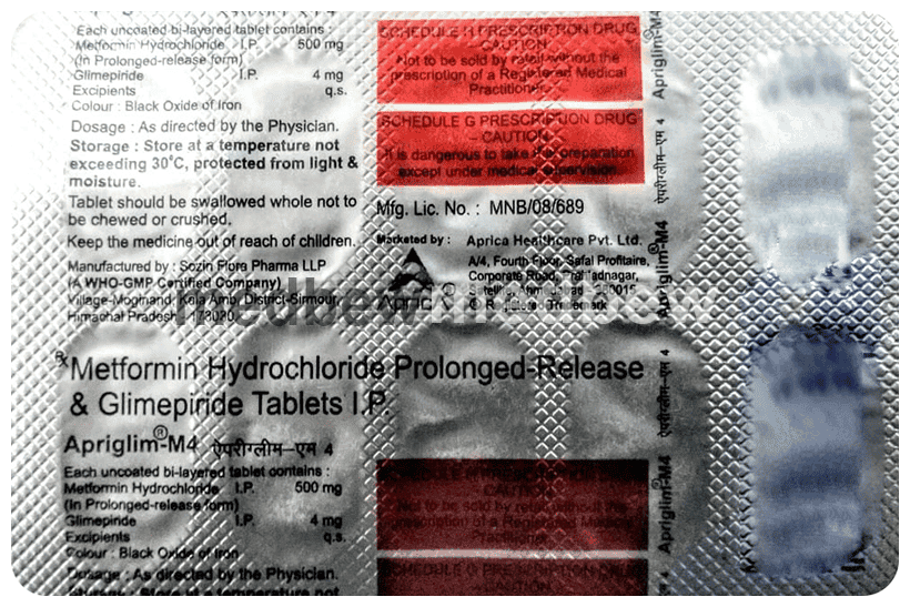 Apriglim-M 4 Tablet PR belongs to a category of medicines known as anti-diabetic drugs. It is a combination of two medicines used to treat type 2 diabetes mellitus in adults. It helps control blood sugar levels in people with diabetes.