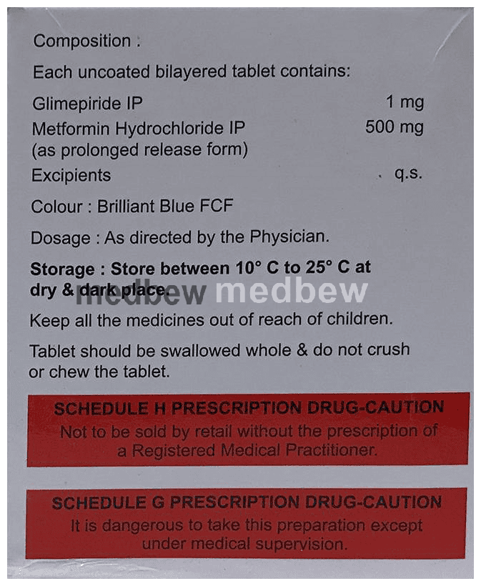 Metformin Hydrochloride Prolonged Release & Glimepiride Tablets I.P. Ankleshwar: Sanofi India Limited; 2018. view