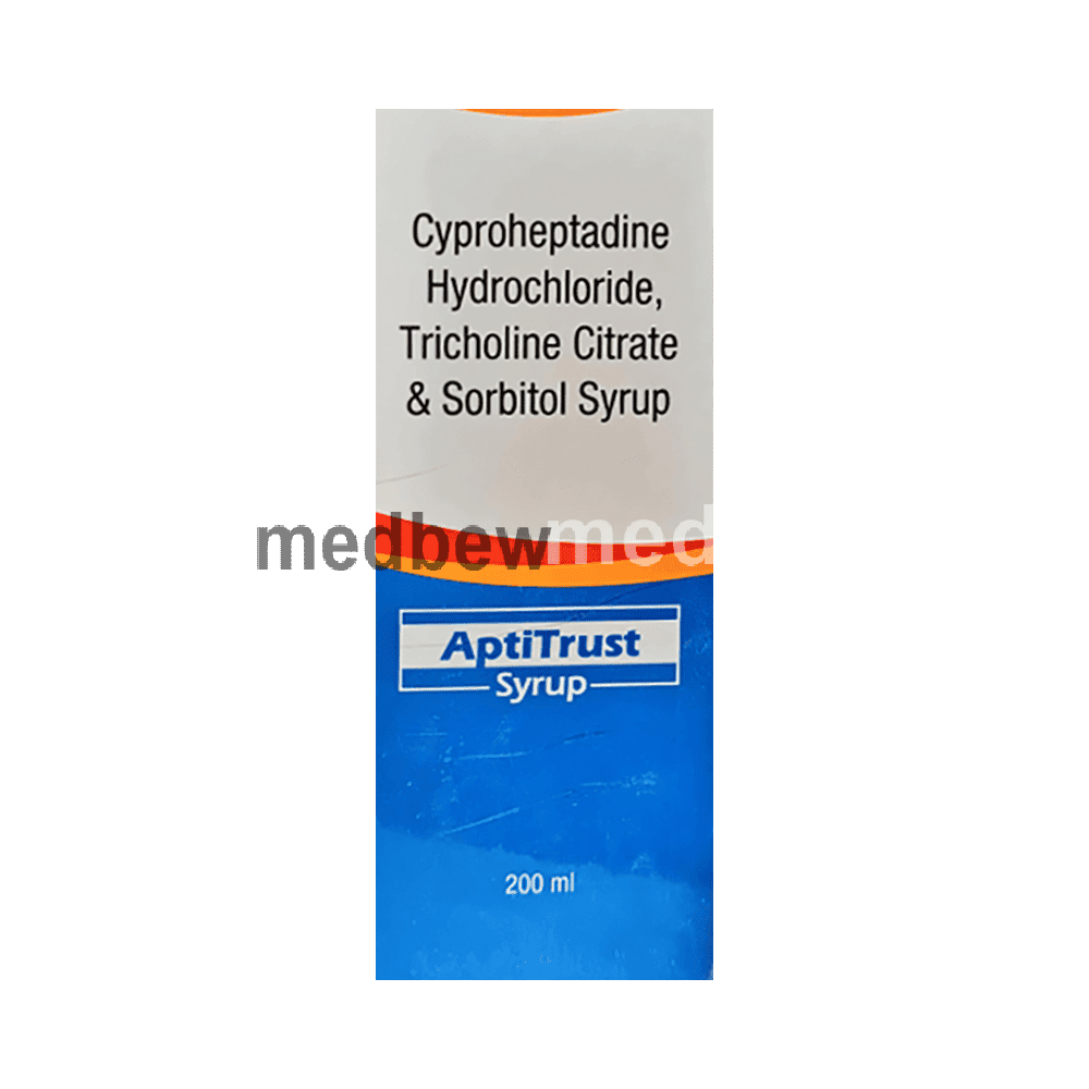 Aptitrust Syrup is a combination of three medicines: Cyproheptadine, tricholine citrate and sorbitol, which revives appetite. Cyproheptadine is an appetite-stimulant. It works by reducing the effect of a chemical messenger (serotonin) in the hypothalamus, a part of the brain which regulates appetite. Tricholine citrate is a bile acid binding agent which removes bile acids from the body. The liver then produces more bile acids using cholesterol, as a result of which cholesterol level is lowered. Sorbitol acts as a syrup base and also as an osmotic laxative to relieve constipation.