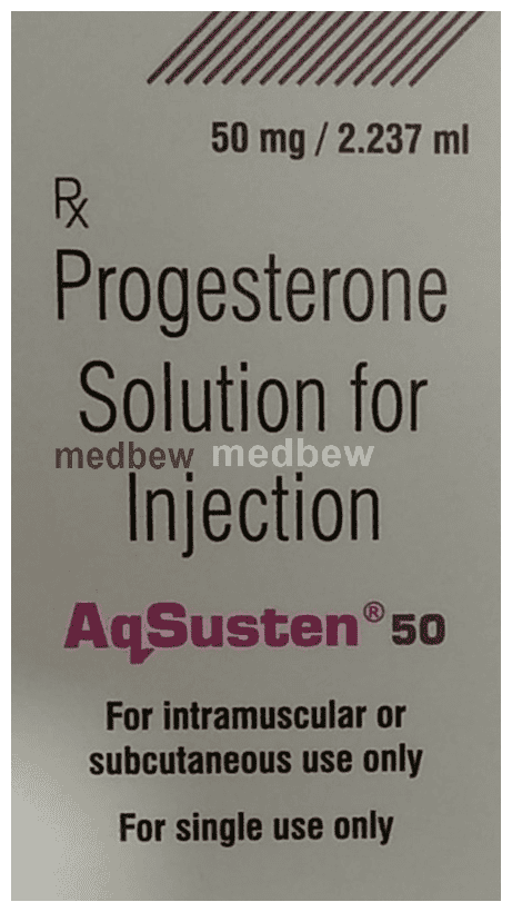 Aqsusten 50 Injection contains progesterone, a female hormone that is important in the regulation of ovulation and menstruation. It is used to cause menstrual periods in women who have not reached menopause but are not having periods due to a lack of natural progesterone in the body. This medicine helps to prepare the uterus for pregnancy by causing the uterus lining (endometrium) to thicken. This increases the chance of a successful pregnancy. You should use the medicine as prescribed for it to be effective. You may be asked to continue with this treatment for a period after becoming pregnant.show moreshow less