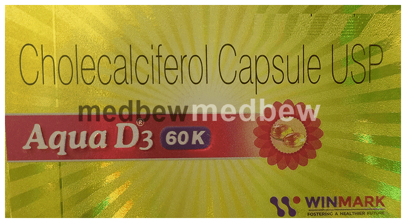 Aqua D3 60K Soft Gelatin Capsule is a form of vitamin D. It raises vitamin D levels in your blood. This in turn raises calcium levels in your blood by helping you absorb more calcium from food.