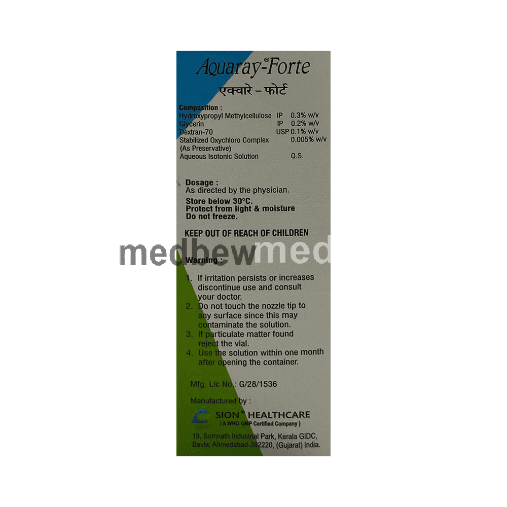 Aquaray-Forte Ophthalmic Solution is a combination medicine used to treat dry eyes. It helps lubricate the eyes and provides temporary relief from burning and discomfort caused by dryness in the eye.