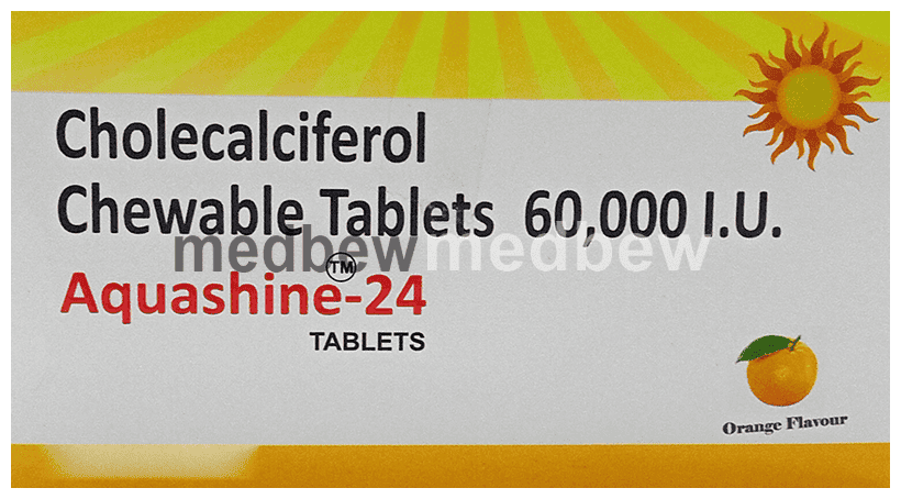 Aquashine 24 Tablet is a form of vitamin D. It raises vitamin D levels in your blood. This in turn raises calcium levels in your blood by helping you absorb more calcium from food.