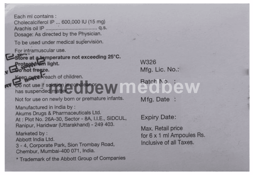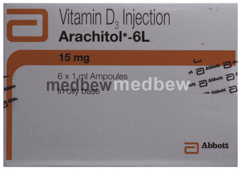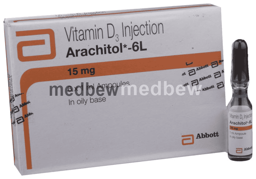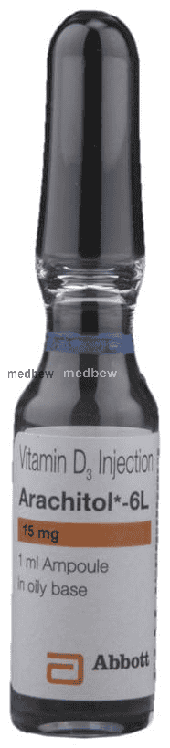 Arachitol 6L Injection helps your body to absorb a mineral called calcium, which is important for maintaining strong bones. This medicine is used if your diet does not provide enough vitamin D and may be used to treat certain bone conditions such as thinning of the bones (osteoporosis).