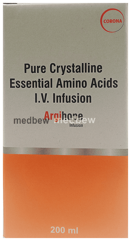 Argihope Infusion are organic compounds that are chained together to form proteins. It is used to treat nutritional deficiencies. It promotes nitrogen-balancing in the body, also replenishes the protein reserve of the body in extensive burns or protein-calorie malnutrition.