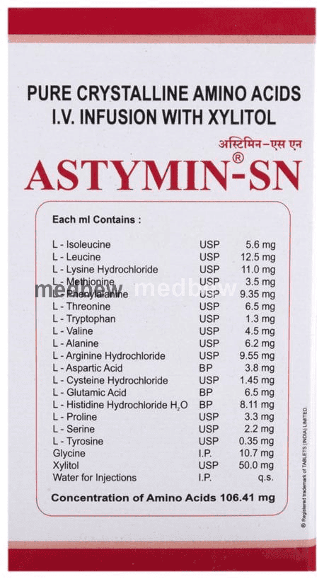 Astymin-SN Infusion is a prescription medicine. It is a combination of nutritional supplements that are prescribed to treat nutritional and mineral deficiencies. It ensures the proper growth and functioning of the body.